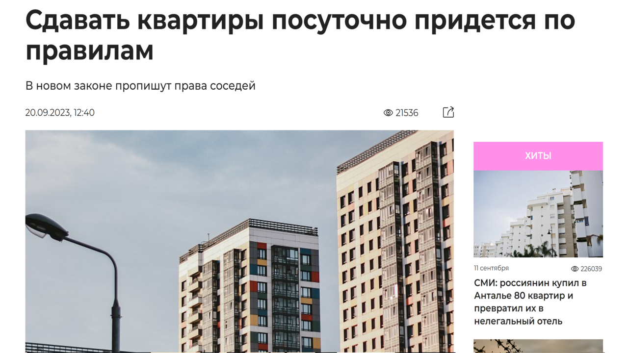 Новости туризма 20/09/2023 Сдавать квартиры посуточно придется по правилам #туризм