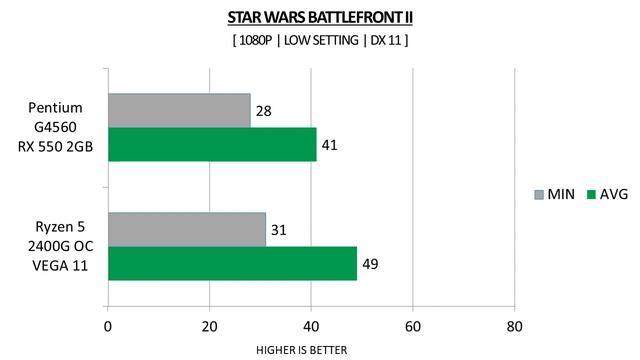 RX 550 + G4560 vs Vega 11 Ryzen 5 2400G Overclock OC - Benchmarks Comparison