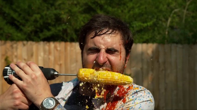 Поедание кукурузы на сверле в слоу- мо