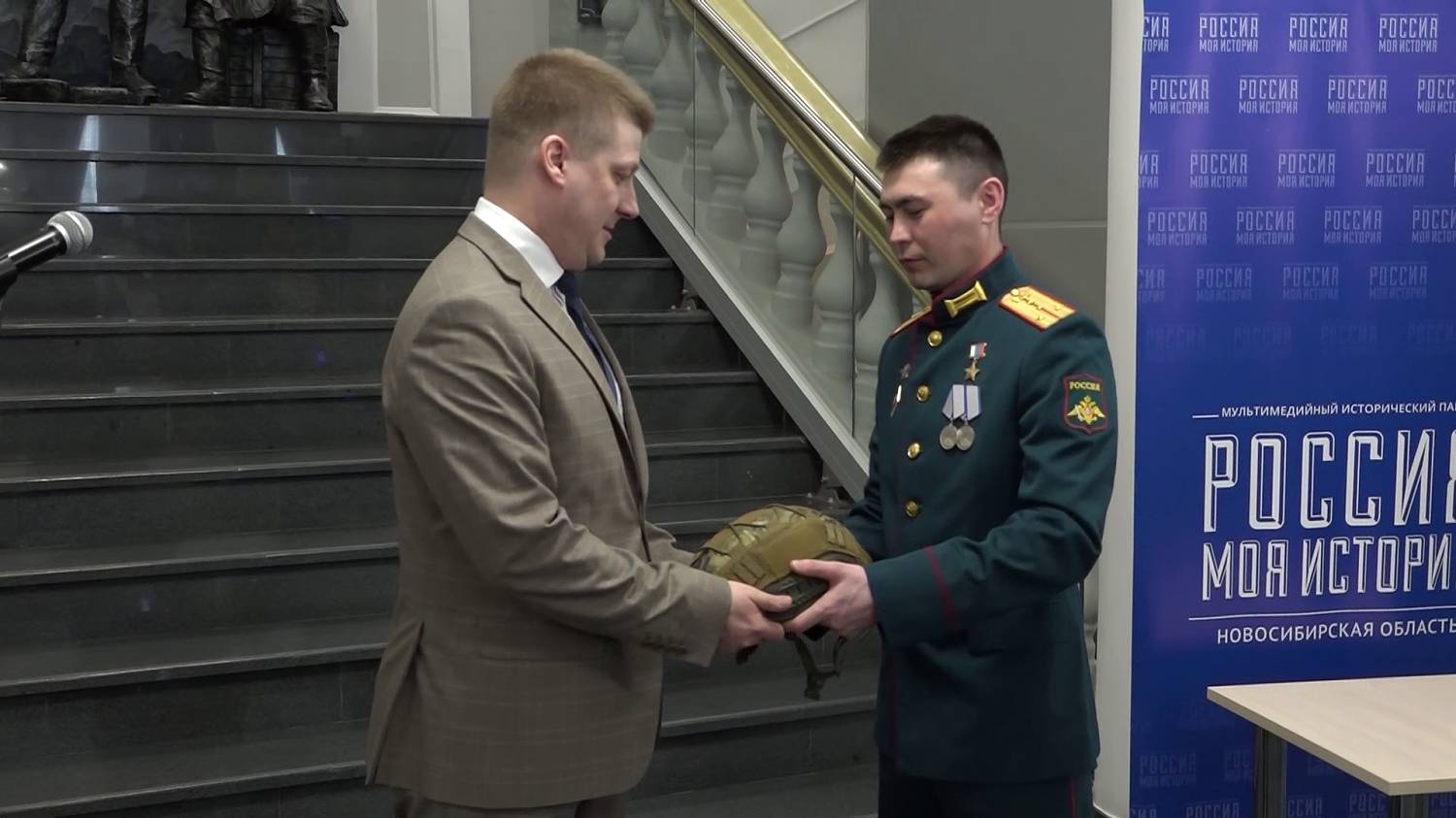 Герой России Рустам Хасанов передал свой шлемофон в дар новосибирскому музею