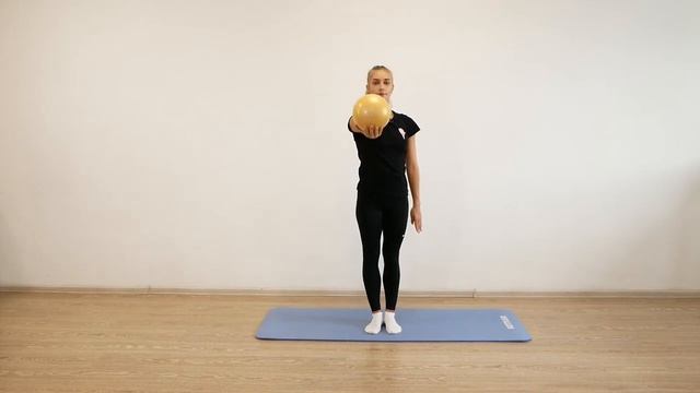 Держим мяч на вытянутой руке перед собой, переводим прямую руку с мячом наверх и обратно. Стараемся не выронить мяч. Выполняем 10 раз