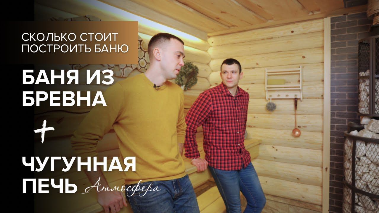 Семейная баня из бревна с чугунной печью.