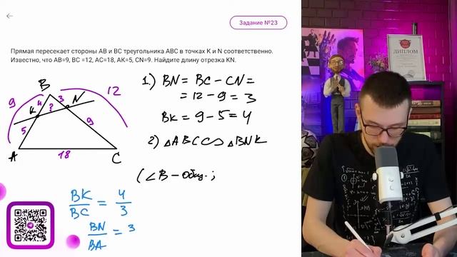 Прямая пересекает стороны АВ и ВС треугольника АВС в точках К и N соответственно - №12163