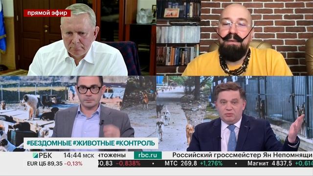 Новости РБК. Что делать с бездомными собаками? Мнение специалистов и научного руководителя сети ветеринарных клиник "Алисавет" - Музалевского Яна Борисовича (с 00:13:45).