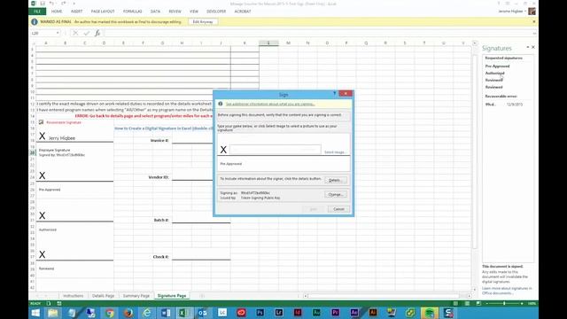 Learn how to add multiple signatures to an Excel 2013 document without accidentally invalidating the signatures.