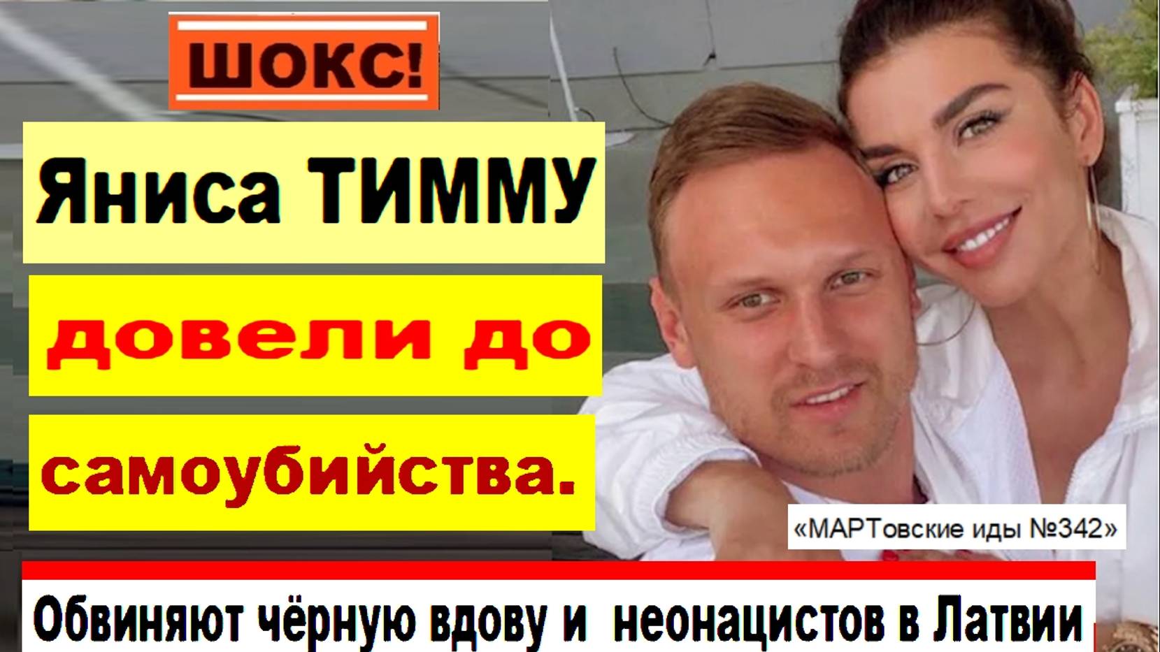 32-летний баскетболист, бывший муж Анны Седоковой (экс-солистка украинской поп-группы «ВИА Гра») Янис Тимма был найден мёртвым в ночь с 16 на 17 декабря. Он повесился в подъезде дома, где снимал жильё в последнее время. Незадолго до этого спортсмен развёлся с артисткой. В его телефоне на заставке было написано: «Позвоните Ане». В тот день певица отмечала день рождения дома с детьми. Она легла спать, не подозревая, какой кошмар ждёт её утром. Как сообщила сестра Яниса Тиммы Лелде Жандецка, проститься с ним можно завтра, 27 декабря, в 15.00, в Рижском крематории. Удалось собрать деньги на доставку тела в Латвию, а также на похороны. Напомним, что как только об отъезде известного латышского спортсмена в Москву стало известно широкой публике, его имя с огромнейшим удовольствием стали мешать с грязью на родине, сообщили СМИ. Начало травле положила отъявленная русофобка - журналистка Элита Вейдемане, скандально прославившаяся своими неонацистскими убеждениями. «Предатель Янис Тимма полон радости — попал в команду к русским», - она злорадно написала. В свою очередь отметился ещё один неонацист - журналист Армандс Пуче (сравнивший русских родителей Латвии, желающих, чтобы их дети учились на родном языке, со «свиньями», а русских в целом - со вшами), который написал, что Янис Тимма, отъехав в Россию, «сделал выбор в пользу дикарей». Такова тема нашего сегодняшнего выпуска новостей в рамках постоянной рубрики «МАРТовские иды №342». Как всегда, ждём комментарии, многоуважаемые зрители. Отсылайте видео друзьям и знакомым! См. наш сюжет: