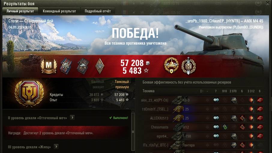 СТЕПИ МАСТЕР на AMX M4 45 ОПЫТ: 1462 СУММАРНЫЙ УРОН: 4230 медаль ВОИН и КАЛИБР