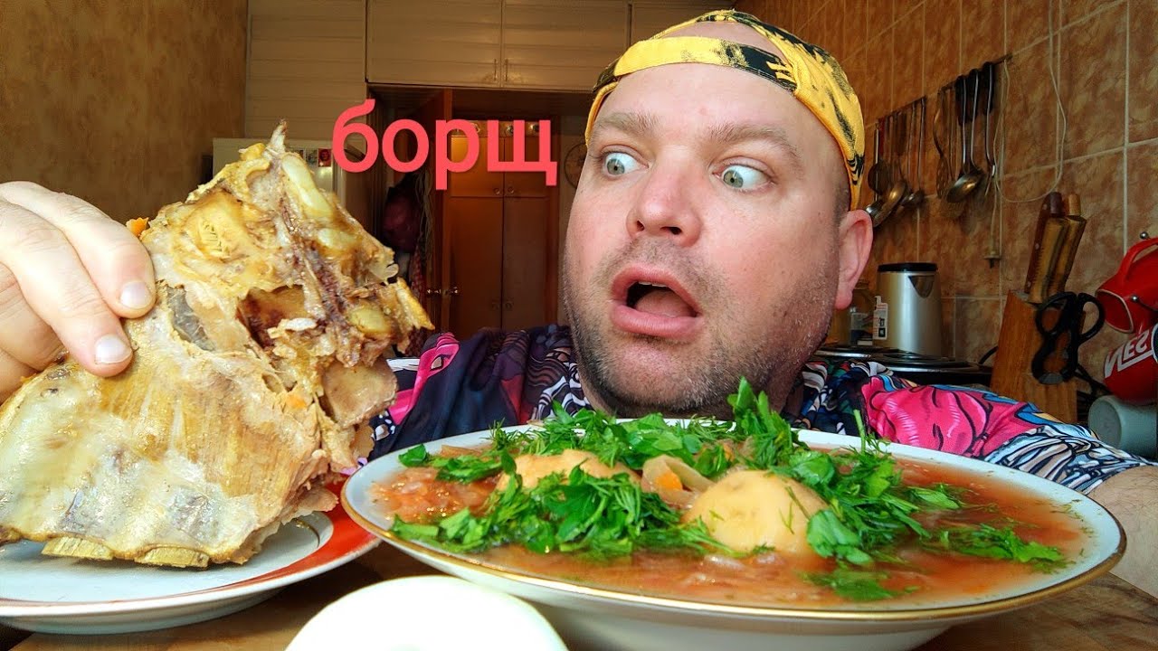 МУКБАНГ борщ/ОБЖОР борщец из свиных рёбер