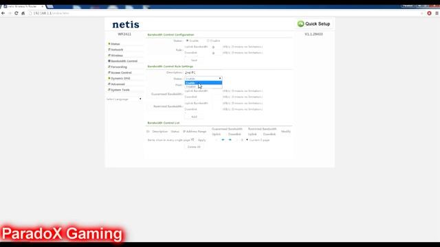 Netis WF2411 Router-Bandwith Control Setting