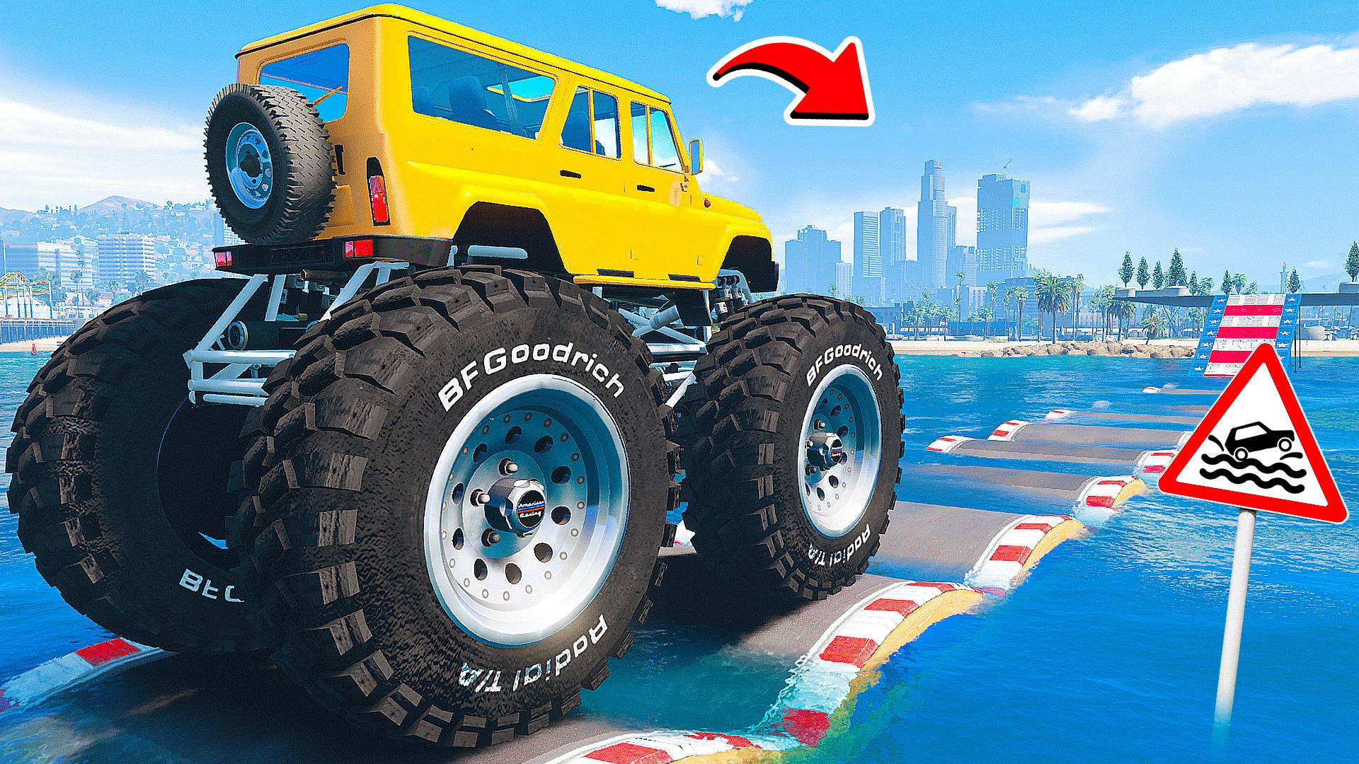ПРОЕХАЛ ВОДНЫЕ КОЧКИ на ГИГАНТСКОМ УАЗИКЕ в ГТА 5 МОДЫ - ЭКСПЕРИМЕНТЫ в GTA 5 MODS
