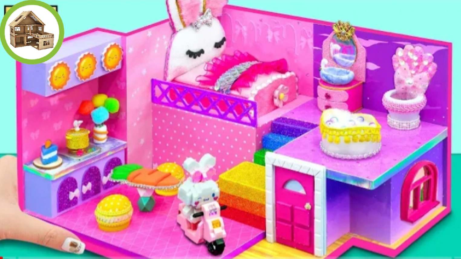 Красивый миниатюрный фиолетовый домик розового кролика мечты из картона /139
