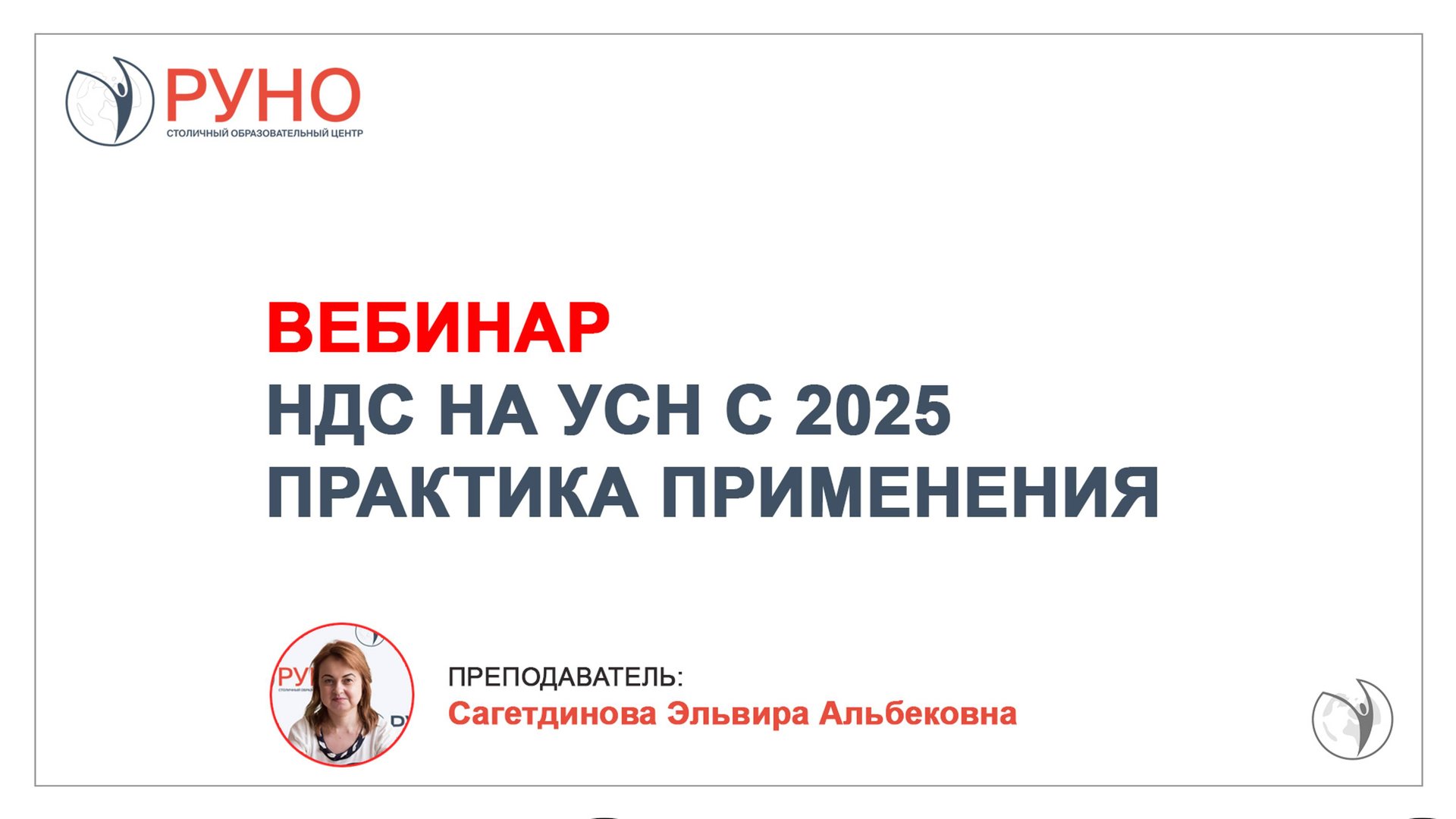 Вебинар от РУНО. НДС на УСН с 2025 года. Практика применения