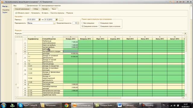Настройка формул в документе «Форма ввода бюджета» в БИТ.ФИНАНС