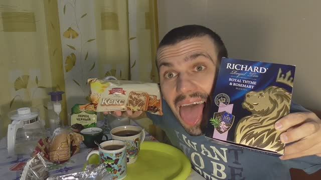 ОБЖОР, ЧАЙ ЧЕРНЫЙ БАЙХОВЫЙ RICHARD КОРОЛЕВСКИЙ ЧАБРЕЦ И РОЗМАРИН, КЕКС БИСКВИТНЫЙ МРАМОРНЫЙ С КАКАО