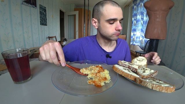МУКБАНГ АСМР КАША ПШЕННАЯ С СОСИСКАМИ / ЯЙЦО ВАРЕНОЕ/ БУТЕРБРОДЫ С МАСЛОМ/ EATING ASMR Mukbang #735