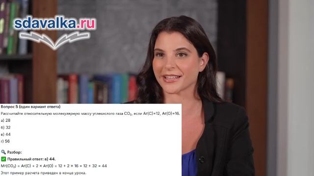 Химия 7 класс. Урок 7. Тест 2. Химические формулы. Относительная атомная и молекулярная массы.