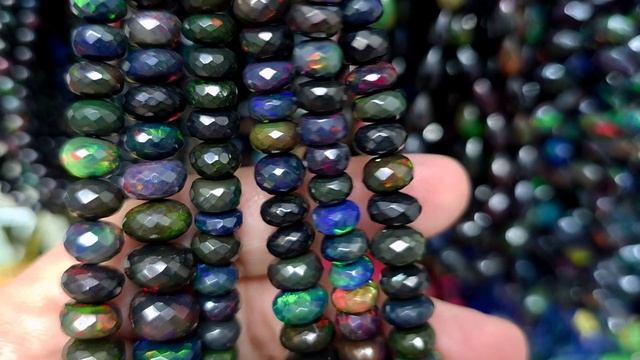 Опал черный бусы