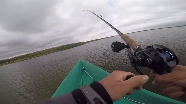 Ловля тяжелой артиллерией: - джерковое удилище BFT Roots G2 7,9' XH; - катушка BFT Instinct X7; - плетенка Sunline PE-EGI #4.0 - приманка Strike Pro Big Badit (19,5 см, 98 гр., плавучесть SS) Автор: Илья Пирогов