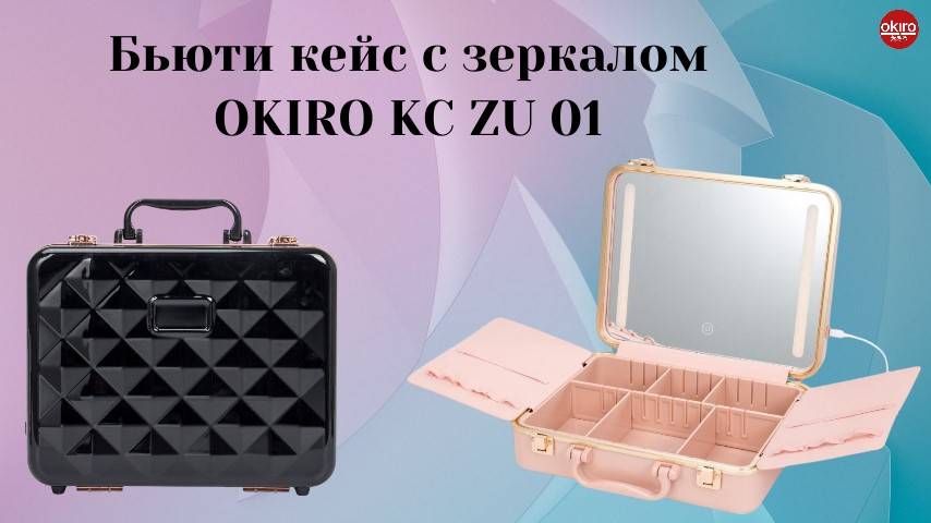 Бьюти кейс с зеркалом OKIRO KC ZU 01 для косметики отлично подойдёт как для хранения, так и для транспортировки косметики. В данном кейсе предусмотрено одно большое нижнее отделение (бокс) размером 27 х 20 х 5 см со съемными перегородками, так же два откидывающихся планшета для кистей с отделениями на резинках (размер планшета 14,5 х 21 см). На корпусе расположена ручка для переноса чемоданчика для косметики. Цвет внутреннего отделения - розовый. Общий размер кейса: 24 х 30 х 10 см На внутренней стороне крышки кейса закреплено зеркало с диодной подсветкой. Зеркало не съемное. Размер зеркала: 28 х 21,5 см. Смена режимов света (теплый/нейтральный/холодный), а так же регулировки яркости света происходит с помощью сенсорной кнопки на зеркале. Цветовая температура: 3200К-6500К. Питание диодной подсветки зеркала происходит с помощью встроенной батареи и расчитан на 5-6 часов работы. Зарядный USB шнур - в комплектации. Мейкап бокс закрывается на два кейсовых замка (без ключей).