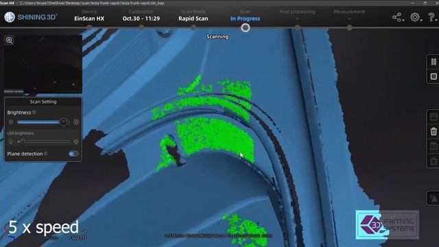 Using the new Shining 3D EinScan HX to scan the internal cavity of the Tesla Model 3 Frunk.