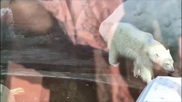 Экзотические животные в московском зоопарке. Белый, полярный медведь.