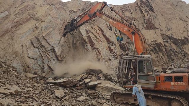 Экскаватор Hitachi EX200 пробивается через скалу.