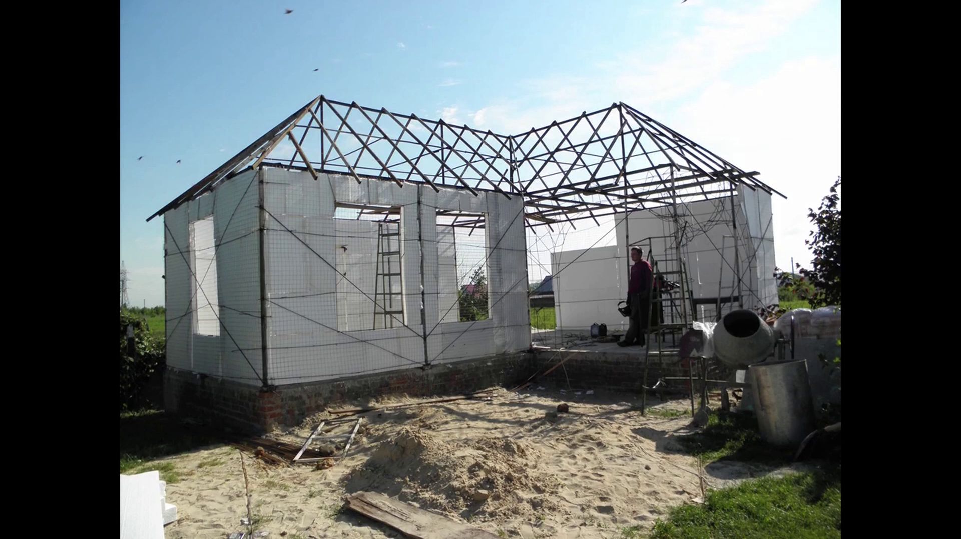 строительство беседки без кирпича. стены из пенопласта. декор стен из арт бетона.мастер класс