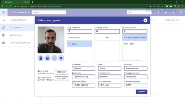 Access Control: Картотека, добавление сотрудников