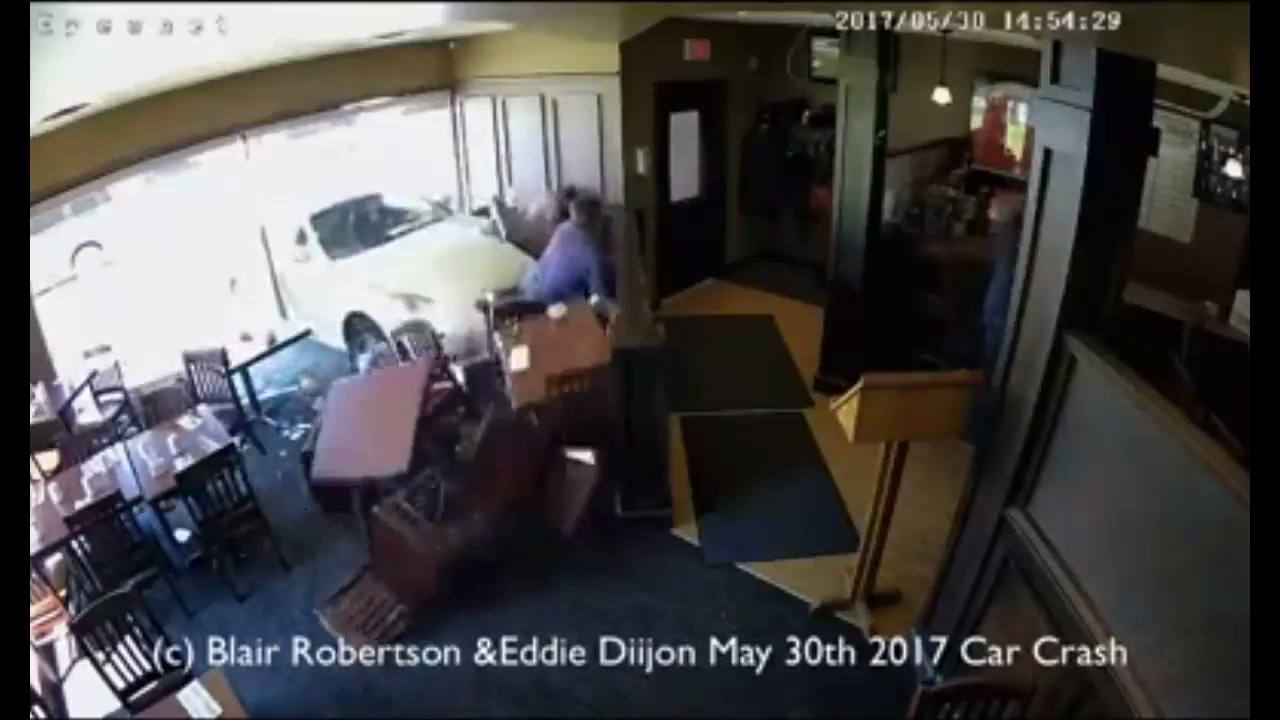 Водитель автомобиля в Канаде не справился с управлением в въехал в кафе. Пострадали два посетителя, сидевшие за столиком у окна. #кафе #автомобиль #онтарио