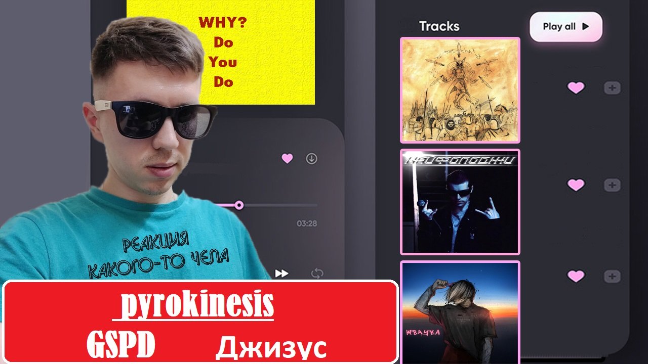 Ccылка на телеграм-канал https://t.me/whydoyoudo_official Поддержать канал, если есть желание - через Donationalerts https://www.donationalerts.com/r/whydoyoydo Заказать реакцию: на трек-50 руб; на альбом: до 15 треков-200 руб, до 25 треков - 300р, более 25 треков- 500р (АНТИХАЙПТРЕЙН-1000р) ; на баттл до 30 мин-200р, более 30 мин-300р (в сообщении с донатом указывайте названия треков, альбомов, баттлов). Подписка на канал обязательна, если хотите больше развлекательного контента в своей жизни. Таймкоды: 00:00 Вступление 00:35 pyrokinesis 06:45 GSPD 12:20 Джизус Данное видео создано исключительно в развлекательных целях и не имеет цели оскорбить или опорочить кого либо. Использование видеофрагментов соответствует статье №1274 Гражданского Кодекса РФ и не противоречит доктрине о добросовестном использовании США: цитирование любого материала возможно в научных, полемических, критических или информационных целях с указанием источника, автора или правообладателя.