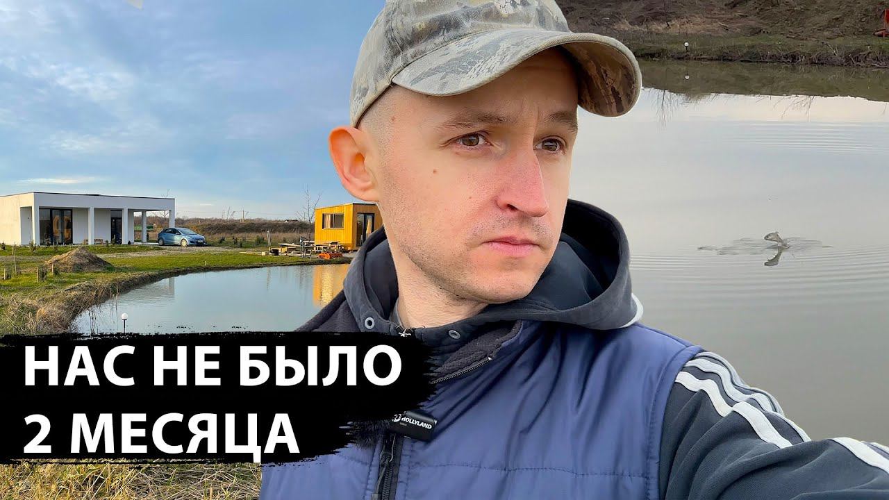 Мы вернулись, 2 месяца нас не было, обзор участка, пруд полный, форель активно охотится