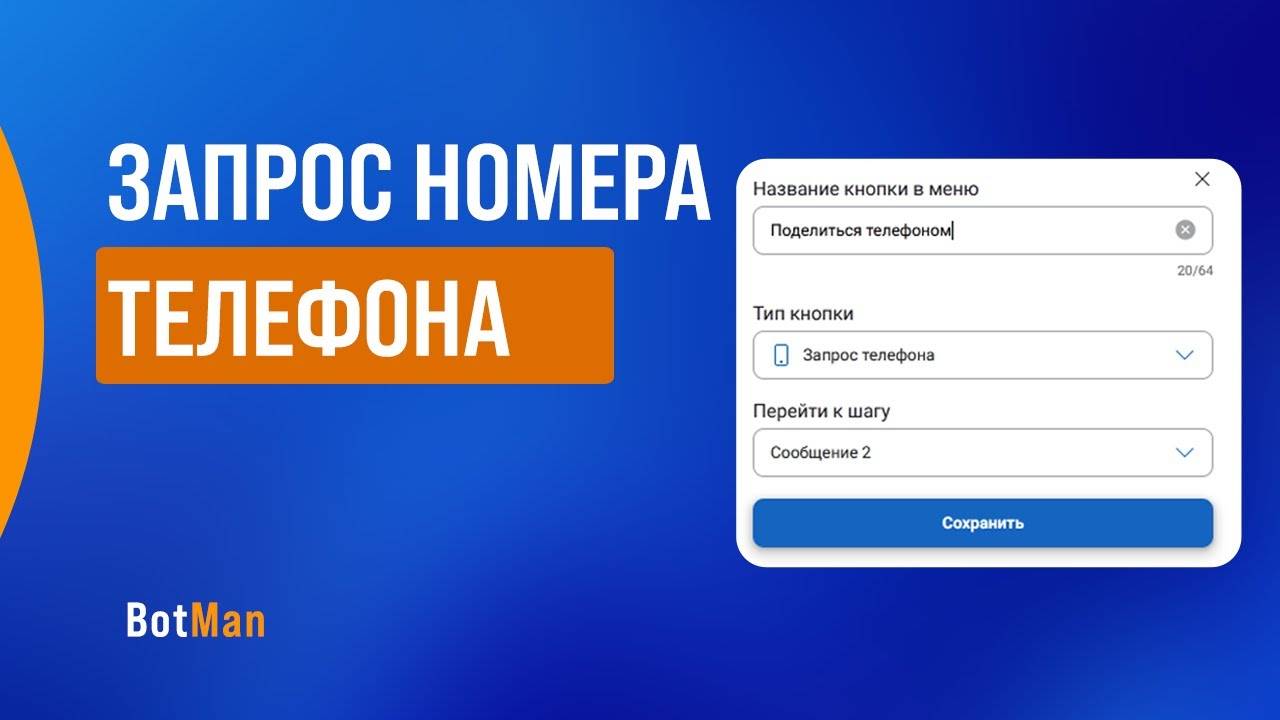 Всем привет! Часто нужно получить номер телефона подписчиков и чтобы не просить их вводить в телеграм есть функция с помощью которой в один клик можно отправить свой телефон Очень удобная функция и мы добавили её в наш сервис, а подробнее можете узнать в видео. Также есть текстовая инструкция https://help.botman.pro/article/15580 - - - - Зарегистрироваться в сервисе: https://vk.cc/cz9hri Наше сообщество ВК: https://vk.com/botman_pro Чат взаимопомощи: https://t.me/Bot_man_chat