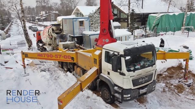 В коттеджном посёлке Монтевиль, где строим дом в стиле Райта площадью 384 кв.м., выполнили заливку плиты фундамента. Как и в других случаях бетонной заливки при минусовых температурах, применена технология кабельного прогрева. Ссылка на проект РАЙТВУД: https://www.domrnr.ru/projects/raytvud/