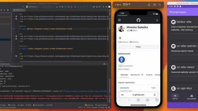 Demo application using open GitHub API and Kotlin Multiplatform. Android - Jetpack Compose, iOS - SwiftUI, PC - React. Link: https://github.com/keygenqt/kmm-GitHubViewer