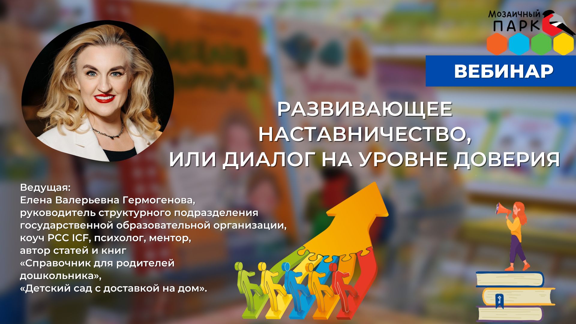 Ведущий: Елена Валерьевна Гермогенова, руководитель структурного подразделения государственной образовательной организации, коуч PCC ICF, психолог, ментор, автор статей и книг «Справочник для родителей дошкольника», «Детский сад с доставкой на дом». https://russkoe-slovo.ru/catalog/647/80886/ https://russkoe-slovo.ru/catalog/647/223396/ Практико-ориентированный вебинар. В приоритетном национальном проекте «Образование» говорится об ускорении модернизации российского образования, результатами которой станет «достижение современного качества образования, адекватного меняющимся запросам общества и социально-экономическим условиям. В нацпроекте заложено два основных механизма стимулирования необходимых системных изменений в образовании: во-первых, это выявление и приоритетная поддержка лидеров – «точек роста» нового качества образования, во–вторых – внедрение в массовую практику элементов новых управленческих механизмов и подходов». К 2024 году не менее 70% обучающихся и педагогических работников должны быть вовлечены в различные формы наставничества и сопровождения. Содержание вебинара: 1. Цели и задачи наставничества. 2. Отличия современного наставничества от других помогающий направлений деятельности. 3. Целевая модель наставничества. 4. Нормативно-правовая база целевой модели наставничества. 5. Варианты внедрения целевой модели наставничества. 6. Формы наставничества. 7. Компетенции наставника. 8. Основные принципы наставничества, его возможности и базовые инструменты. Присоединяйтесь к нам в социальных сетях! Телеграм: https://t.me/rslovo Центр дошкольного образования: https://мозаика-парк.рф/ Вконтакте https://vk.com/mozaika_park Издательство «Русское слово»: https://русское-слово.рф/ ВКонтакте: https://vk.com/rus_slo Одноклассники: https://ok.ru/group/57720246435859 #Русское_слово #Вебинары_РС #дошкольники #МозаичныйПАРК #детскийсад #помощьвоспитателю #наставничество