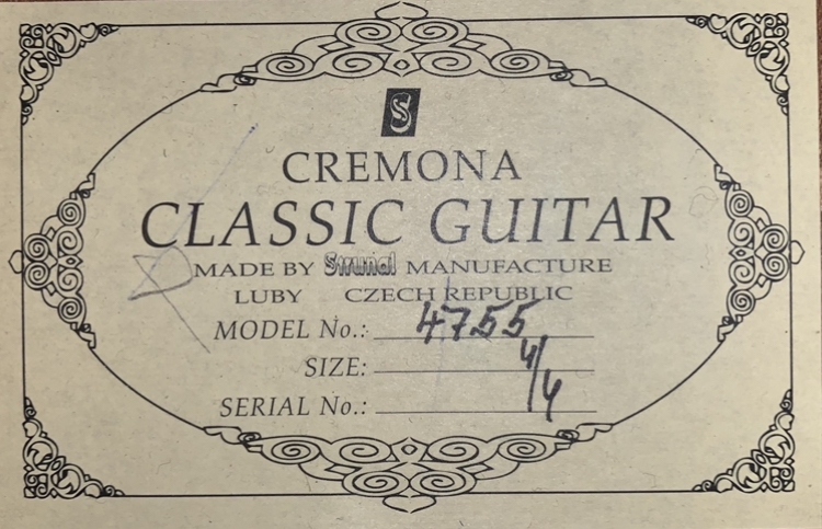 Гитара классическая Cremona 4755 Верхняя дека: Массив кедра Нижняя дека: Шпон махагони Обечайки: Шпон махагони Гриф: Махагони Накладка грифа: Палисандр Подставка: Палисандр Колки: Латунные Отделка: Высокий блеск или полуматовая Дополнительно: кант по корпусу махагони, нейлоновые струны