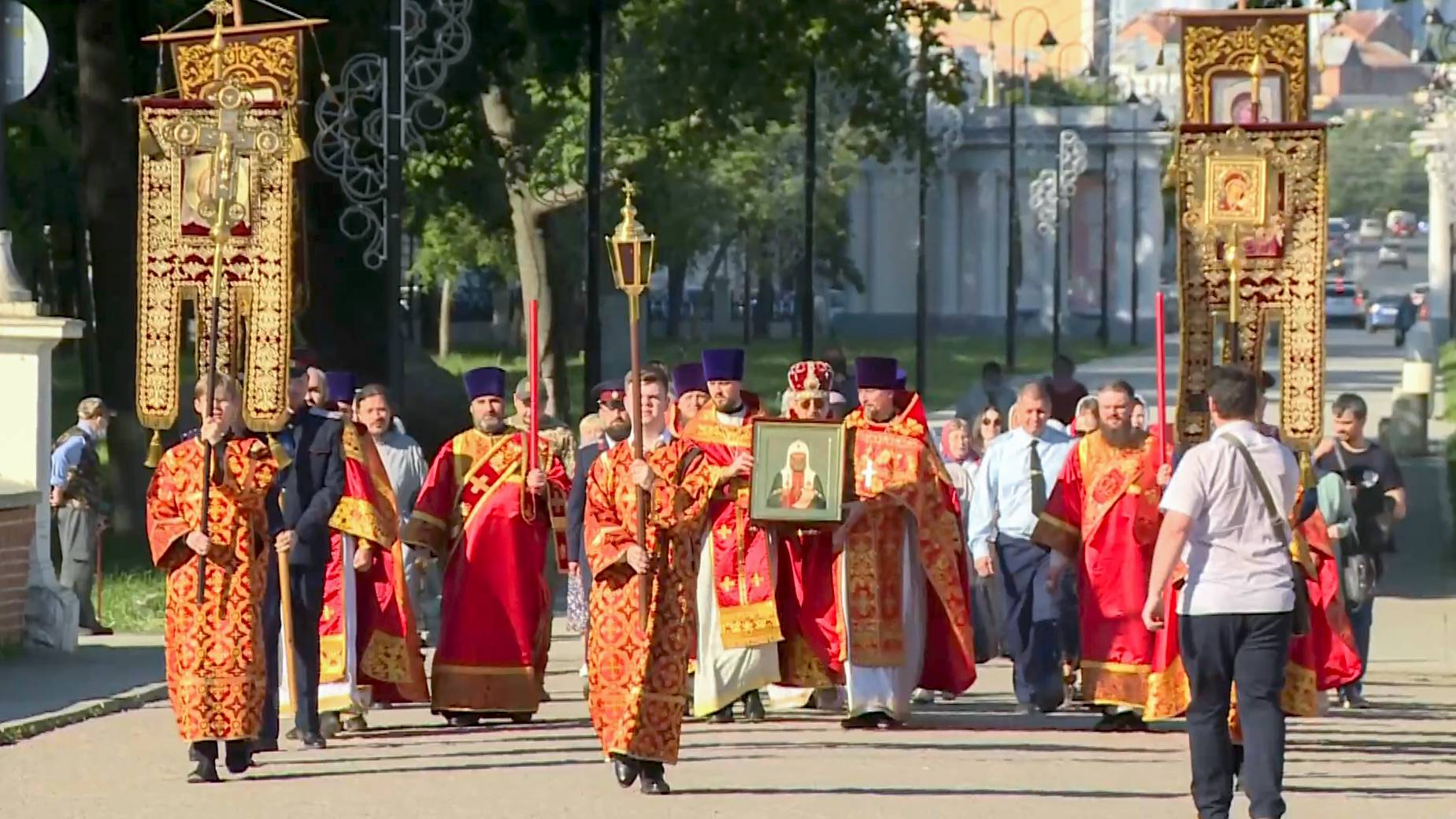 В Рязань прибыл ковчег с мощами святителя Тихона Белавина. Паломничество организовано по благословению Патриарха Московского и всея Руси Кирилла и приурочено к 100-летию преставления святого. Напомним, что в апреле из Донского монастыря Москвы началось всероссийское паломничество с мощами святителя. Запланировано посещение 90 городов России и Белоруссии. На торжественной встрече ковчега в Рязани побывала наша съёмочная группа.