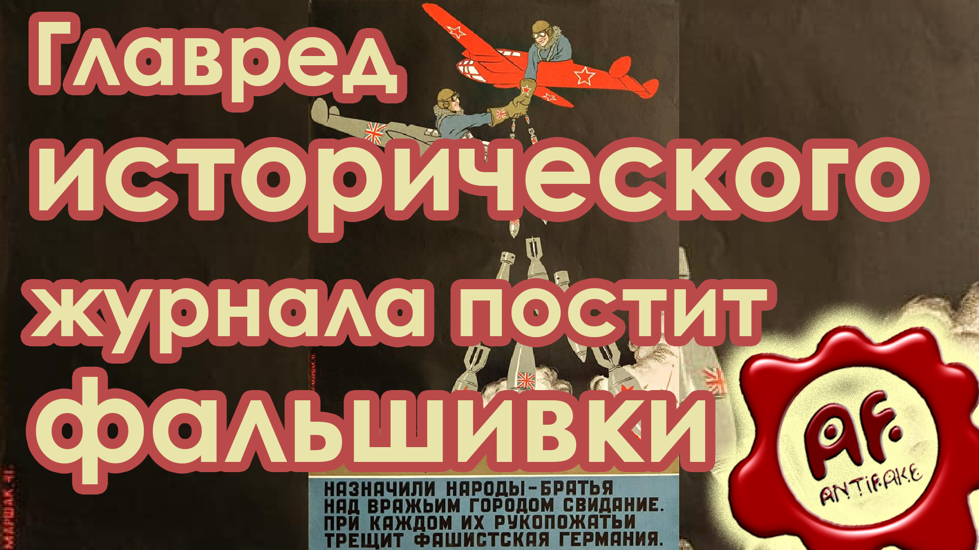 Главный редактор исторического журнала «Дилетант» Виталий Дымарский разместил у себя в Фейсбуке советский плакат. На нём, как видите, советский и немецкий лётчики пожимают друг другу руки и бомбят Лондон. Над плакатом комментарий: «Забытый и старательно изъятый и всех архивов плакат Кукрыниксов от 1940 года». От себя Дымарский дописал: «К юбилею пакта Молотова - Риббентропа. Для тех, кто верит в сказки про «лучше подготовиться к войне», «оттянуть войну» и т.д.»… (Продолжение в видео) Спасибо Андрею за материал. Ссылки на любителей фотошопа присылайте, пожалуйста, сюда: https://facebook.com/pavlov.serj https://vk.com/pavlov_sergei Источники: Разбираемый пост: https://www.facebook.com/vitaly.dymarsky/posts/2336725653111308 Оригинал 1944 года на сайте МО: https://мультимедиа.минобороны.рф/images/military/photogalleryfile/03/405.jpg Да, это фэйк, но это правда!: https://www.facebook.com/vitaly.dymarsky/posts/2339164409534099 Виталий Дымарский награжден медалью «За заслуги в увековечении памяти погибших защитников Отечества»: https://echo.msk.ru/doc/760258-echo.html #история #пакт #втораямироваявойна #вов
