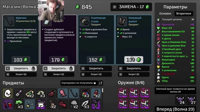 100% шанс проклятия крючками ИЗИ (#Brotato:New dawn, #эпик #хайлайт)