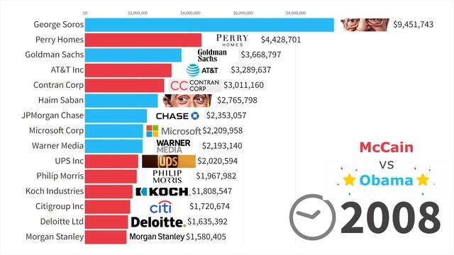 Кто финансировал президентские выборы, Крупнейшие финансовые доноры в 1990-2024 годах