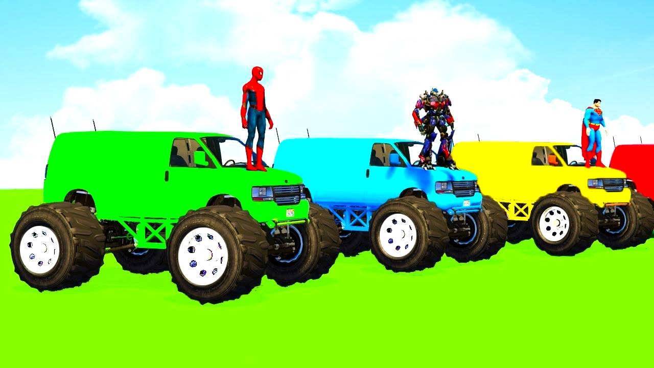 Мультики про машинки Человек-паук катается на монстр-траках и вертолётах. Мультики для детей.