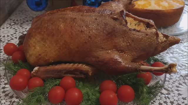 Запеченная утка в духовке с рисом и овощами. Утка в рукаве на праздник,праздничный стол, ужин