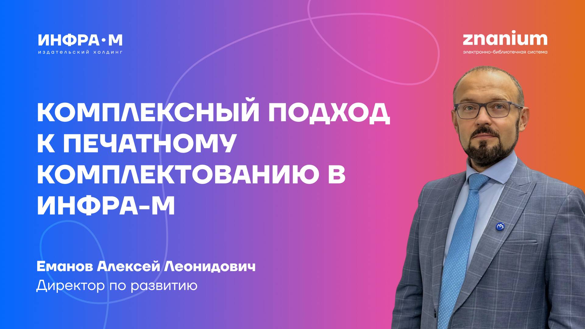 👨🏼💻 Спикер: Еманов Алексей Леонидович, директор по развитию 💡 Мы расскажем о комплексном подходе ИНФРА-М к формированию библиотечных ресурсов учебной и научной литературой собственных и ведущих отраслевых и вузовских издательств. Вы узнаете о методах и способах комплектования, а также о возможностях поддержки и продвижения печатного фонда библиотеки. На вебинаре расскажем про: 🔹 преимущества единой площадки комплектования в издательском холдинге ИНФРА-М; 🔹 варианты печатного комплектования библиотеки; 🔹 варианты печатного комплектования библиотеки; 🎬 Смотрите другие наши вебинары ⇢ https://www.youtube.com/playlist?list=PLi2KS7pzBHJVRV.. 🖥 Библиотека электронной литературы ⇢ https://znanium.com/ 📚 Магазин печатных книг ⇢ https://infra-m.ru/ ✅ Подписывайся на наши соцсети и будь в курсе всех новостей и обновлений: Мы в VK ⇢ https://vk.com/inframgroup YouTube ⇢ https://www.youtube.com/@ebs_znanium Telegram-канал ⇢ https://t.me/infra_znanium Мы в Одноклассниках ⇢ https://ok.ru/profile/586134824940
