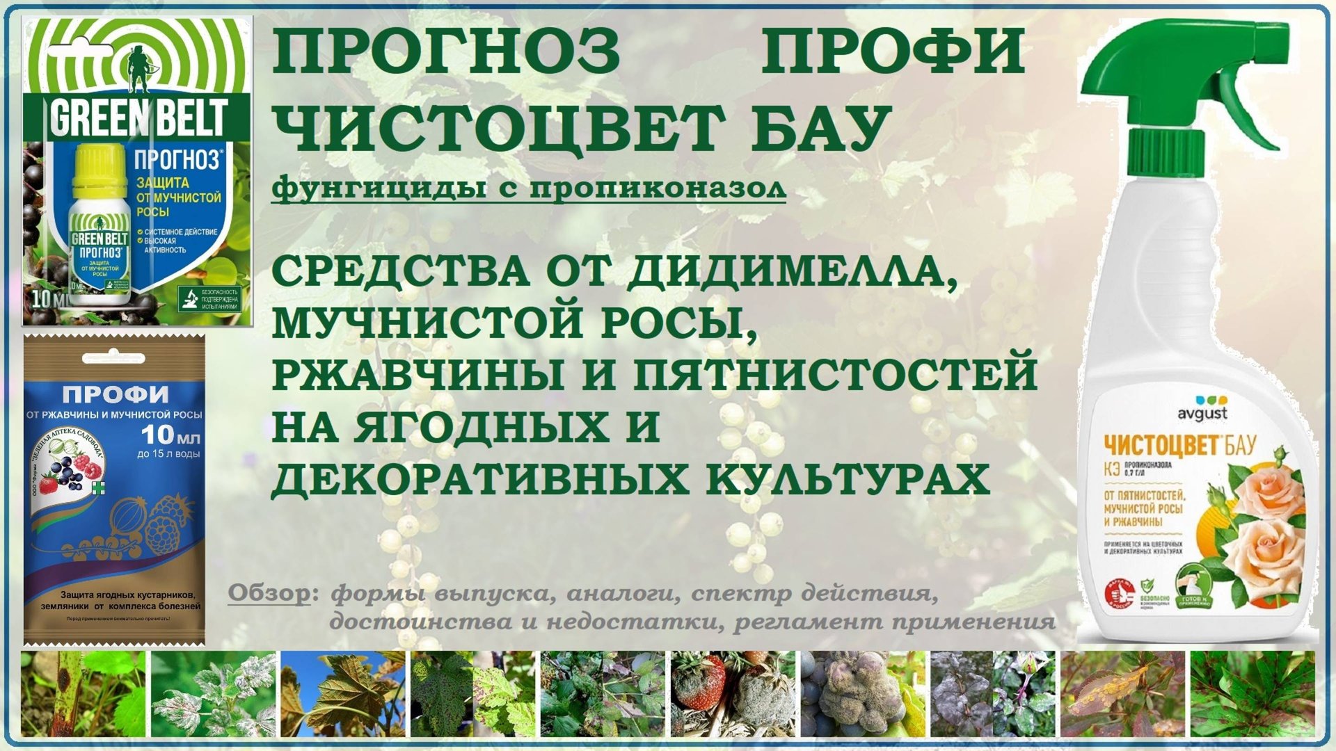 Прогноз, Профи и Чистоцвет БАУ- средства от дидимелла, ржавчины, мучнистой росы и пятнистостей