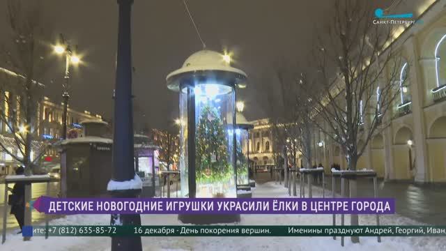 Детские новогодние игрушки украсили ёлки в центре Петербурга