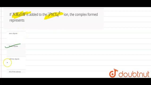 If NH_(4)OH is added to the [PtCl_(4)]^(2-) ion, the complex formed represents Class: 12 Subject: CHEMISTRY Chapter: CO-ORDINATION COMPOUNDS Board:NEET You can ask any doubt from class 6-12, JEE, NEET, Teaching, SSC, Defense and Banking exam on Doubtnut App or You can Whatsapp us at - 8400400400 Link - https://doubtnut.app.link/2um0jr7Joeb Join our courses to improve your performance and Clear your concepts from basic for Class 6-12 School and Competitive exams (JEE/NEET) - https://doubtnut.app.link/POyZDvv5Lyb Contact Us: 👉 Have Any Query? Ask Us. 🤙 Call: 01247158250 💬 WhatsApp: 8400400400 📧 Email: info@doubtnut.com 🌐 Website: https://www.doubtnut.com Welcome to Doubtnut. Doubtnut is World’s Biggest Platform for Video Solutions of Physics, Chemistry, Maths and Biology Doubts with over 5 million+ Video Solutions. Doubtnut is a Q&A App for Maths, Physics, Chemistry and Biology (up to JEE Advanced and NEET Level), Where You Can Ask Unlimited Questions by Clicking a Picture of Doubt on the Doubtnut App and Get Instant Video Solution. Subscribe Our YouTube Channels: ✿ Doubtnut: https://www.youtube.com/channel/UCcv7pspGHmM7AOywuLM1ufA?sub_confirmation=1 ✿ Class 11-12, JEE & NEET (Hindi): https://www.youtube.com/channel/UCiIrZf4bn1i0IOf8YgSMzWA?sub_confirmation=1 ✿ Class 11-12, JEE & NEET (English):: https://www.youtube.com/channel/UCbJ_xe2bMLo9yuBC-i_13MQ?sub_confirmation=1 ✿ Class 6-10 (Hindi): https://www.youtube.com/channel/UCZnV1hkn5A3fdpTOVi60tzg?sub_confirmation=1 ✿ Class 6-10 (English): https://www.youtube.com/channel/UC9KeHSWOEBXIrbWYasHeSyg?sub_confirmation=1 ✿ Doubtnut Govt. Exams: https://www.youtube.com/channel/UCWPaROsU_06MSqiZ_O6zaVg?sub_confirmation=1 Follow Us: 🔔 Facebook: https://www.facebook.com/doubtnut 🔔 Instagram: https://www.instagram.com/doubtnut 🔔 Telegram: https://t.me/DoubtnutOfficial 🔔 Twitter: https://twitter.com/DoubtnutApp 🔔 LinkedIn: https://www.linkedin.com/company/doubtnut Our Telegram Pages: 🔔 Doubtnut Official: https://t.me/DoubtnutOfficial 🔔 Doubtnut IIT JEE: https://t.me/DoubtnutIITJEE 🔔 Doubtnut NEET: https://t.me/Doubtnut_NEET 🔔 Doubtnut CBSE Boards: https://t.me/DoubtnutCBSEBoards 🔔 Doubtnut UP Boards: https://t.me/DoubtnutUPBoards 🔔 Doubtnut Bihar Boards: https://t.me/DoubtnutBiharBoards 🔔 Doubtnut Government Exams: https://t.me/DoubtnutGovernmentExams class 12 class 12 physics class 12 chemistry class 12 english class 12 maths class 12 biology cbse class 12 result class 12 economics class 12 accountancy class 12 syllabus physics cbse class 12 class 12 english grammar class 12 syllabus cbse class 12 history class 12 geography class 12 ncert class 12 syllabus cbse class 12 maths cbse class 12 english cbse class 12 physics cbse class 12 chemistry class 12 grammar cbse class 12 biology cbse class 12 commerce cbse class 12 accountancy class 12 syllabus chemistry class 12 grammar syllabus class 12 syllabus maths class 12 latest syllabus class 12 syllabus english class 12 syllabus biology class 12 syllabus of physics class 12 syllabus of chemistry class 12 syllabus science class 12 syllabus ncert class 12 syllabus of english class 12 syllabus commerce