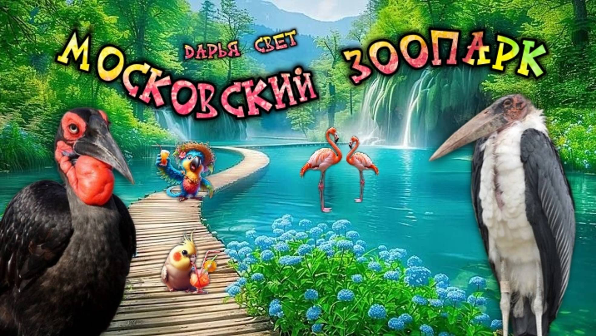 Фламинго. Папуанский калао. Рогатый ворон. Африканский марабу. Птицы. Московский зоопарк 2025