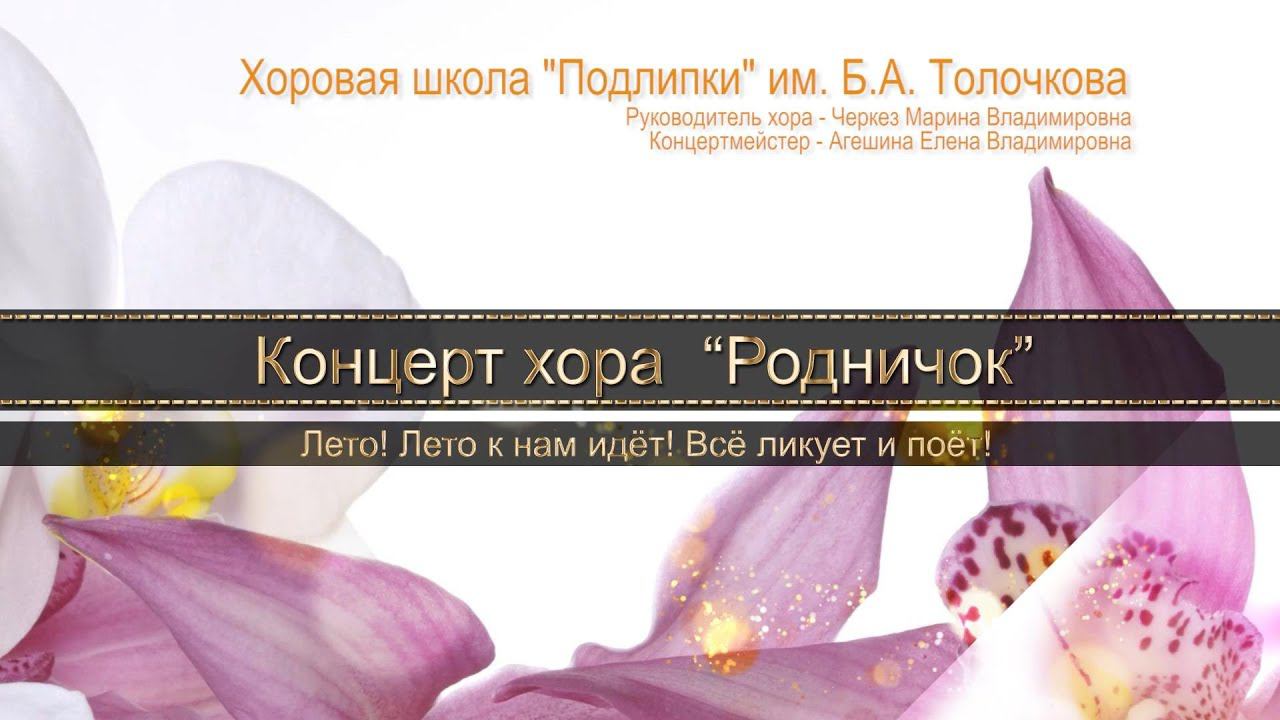 «Лето! Лето к нам идёт! - Всё ликует и поёт!» - музыкально-поэтическая зарисовка хора «Родничок» «Детской хоровой школы «Подлипки» (7 лет). Руководитель хора - Черкез Марина Владимировна, Концертмейстер - Агешина Елена Владимировна