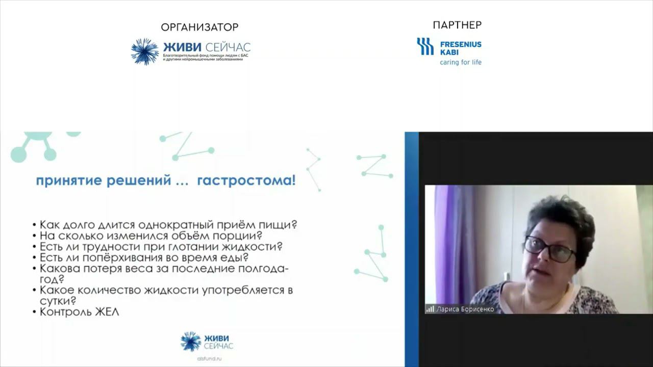 Борисенко Л. Г. Конференция по питанию. Особенности патронажного ухода за больными БАС.