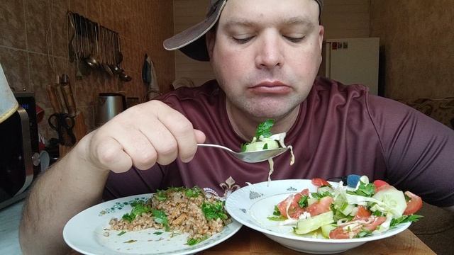 ОБЖОР Гречка по купечески и салат из овощей/мукбанг утренний
